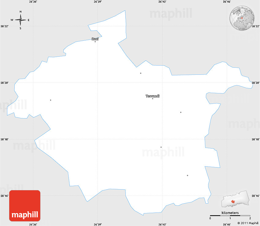The simple silver style outline map represents one of several map types and styles available. Look at Ülenurme, Tartu, Estonia from different perspectives.