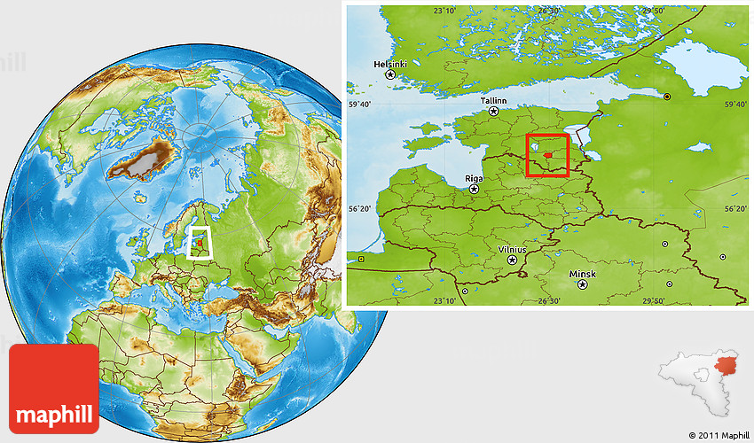 Maphill is a collection of map images. This image combines a physical map with the globe centered on Pühajärve. Use the buttons under the image to switch to different map types.