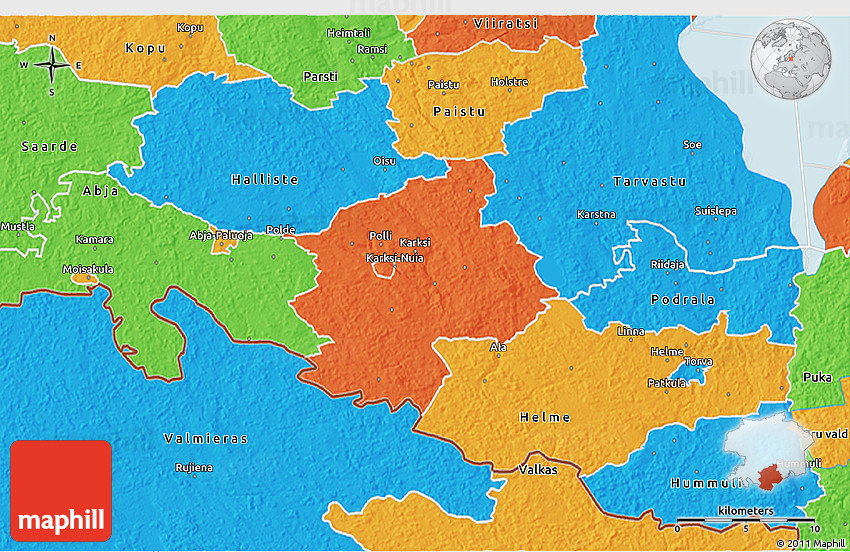 The 3D political map represents one of several map types and styles available. Look at Karksi, Viljandi, Estonia from different perspectives.