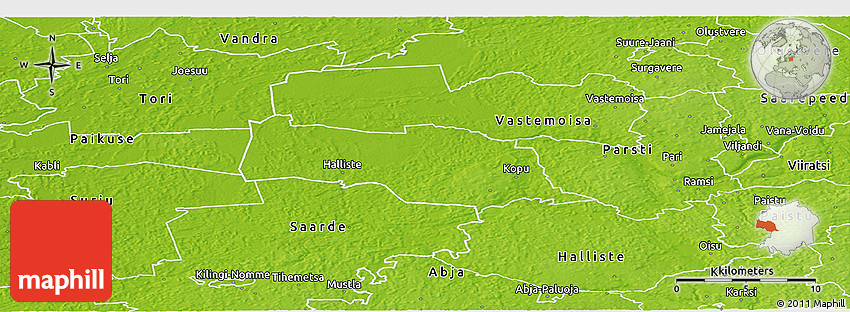 The panoramic physical map represents one of several map types and styles available. Look at Kopu, Viljandi, Estonia from different perspectives.