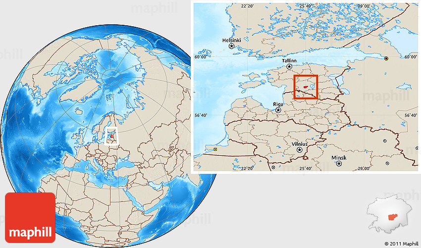 The location map of Paistu combines two projections: the orthographic azimuthal projection for the globe and the simple geographic projection for the rectangular part of the map. Geographic projection has straight meridians and parallels, each degree of latitude and longitude is the same size over the entire world map.