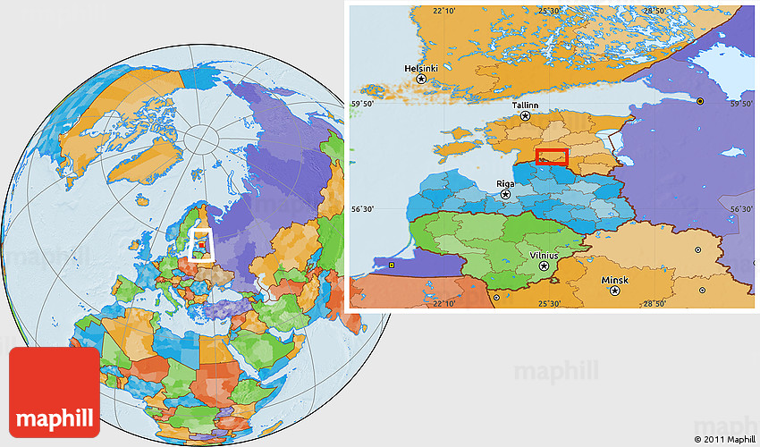 Maphill is a collection of map images. This image combines a political map with the globe centered on Kärstna. Use the buttons under the image to switch to different map types.