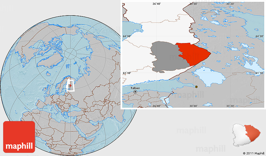 Maphill is a collection of map images. This image combines a gray map with the globe centered on Pohjois-Karjala. Use the buttons under the image to switch to different map types.