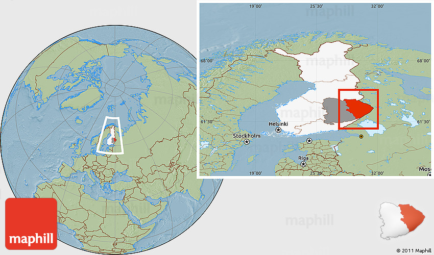 Maphill is a collection of map images. This image combines a savanna style map with the globe centered on Pohjois-Karjala. Use the buttons under the image to switch to different map types.
