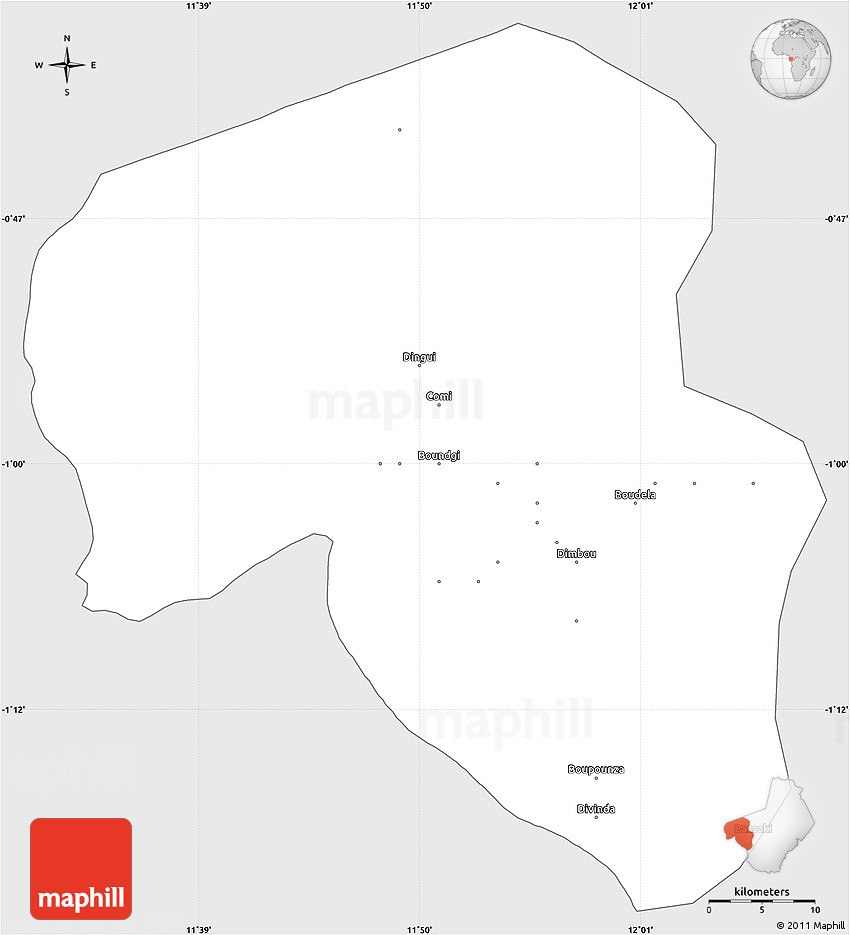 The simple silver style outline map represents one of several map types and styles available. Look at Offoue-Onoye (Iboundji), Ogooue-Lolo, Gabon from different perspectives.