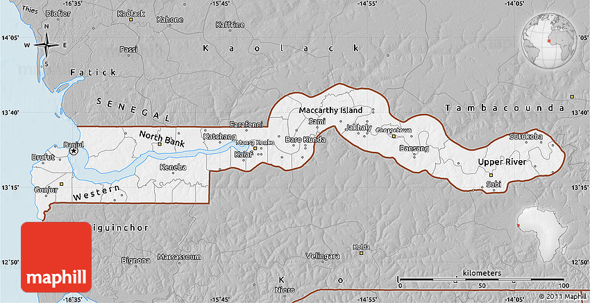 Use the buttons for Facebook, Twitter or Google+ to share a link to this The Gambia map. Maphill is the largest map gallery on the web. But the number of maps is certainly not the only reason to visit Maphill.