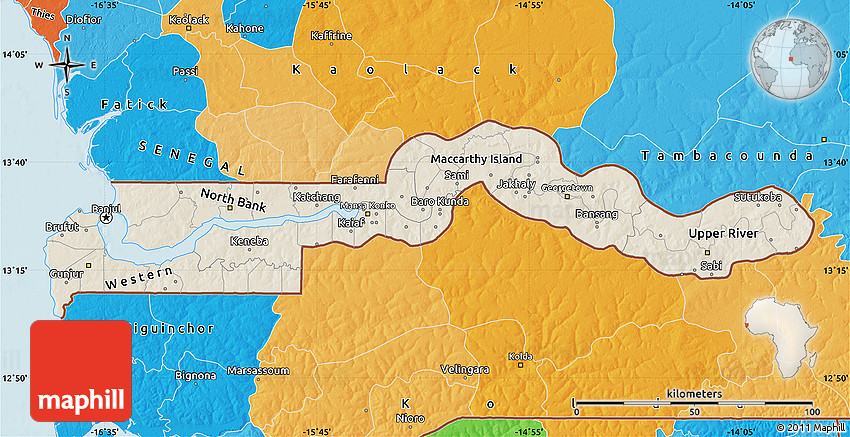 Use the buttons for Facebook, Twitter or Google+ to share a link to this The Gambia map. Maphill is the largest map gallery on the web. But the number of maps is certainly not the only reason to visit Maphill.