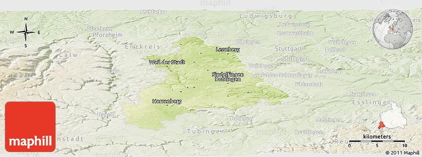Each map type offers different information and each map style is designed for a different purpose. Read about the styles and map projection used in the above map (Physical Panoramic Map of Böblingen, lighten).