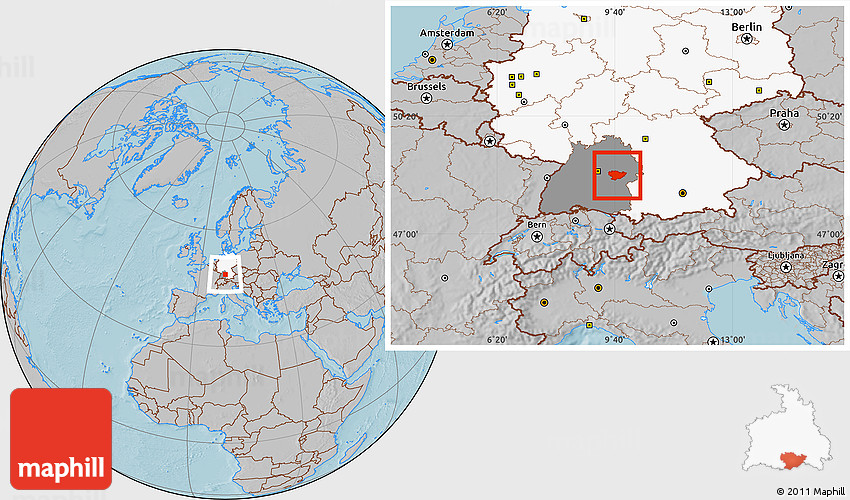 Maphill is a collection of map images. This image combines a gray map with the globe centered on Göppingen. Use the buttons under the image to switch to different map types.