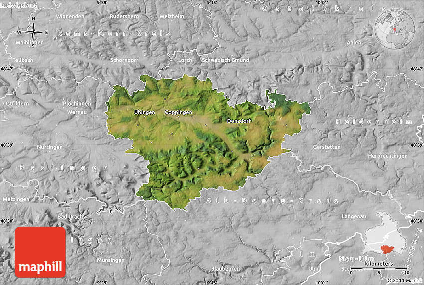 Maphill is a collection of map images. This satellite map of Göppingen is one of them. Click on the Detailed button under the image to switch to a more detailed map.