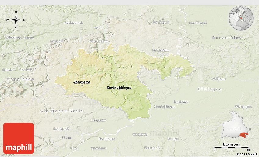 Each map type offers different information and each map style is designed for a different purpose. Read about the styles and map projection used in the above map (Physical 3D Map of Heidenheim, lighten).