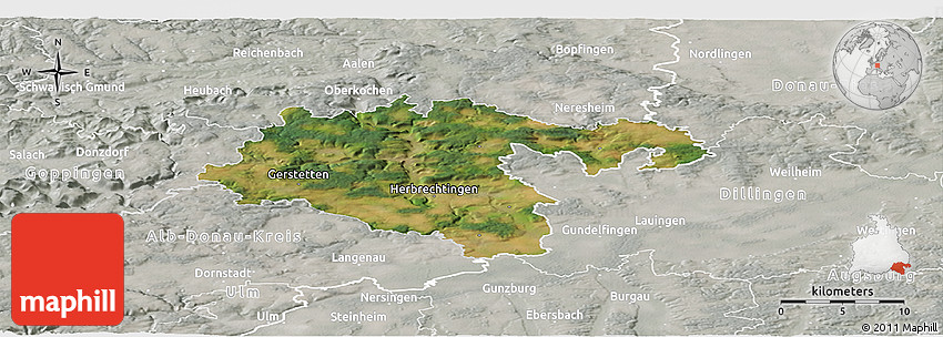 This satellite panoramic map of Heidenheim is available in a JPEG image format. You can embed, print or download the map just like any other image. Enrich your website with hiqh quality map graphics. Use the Free map button above the image.