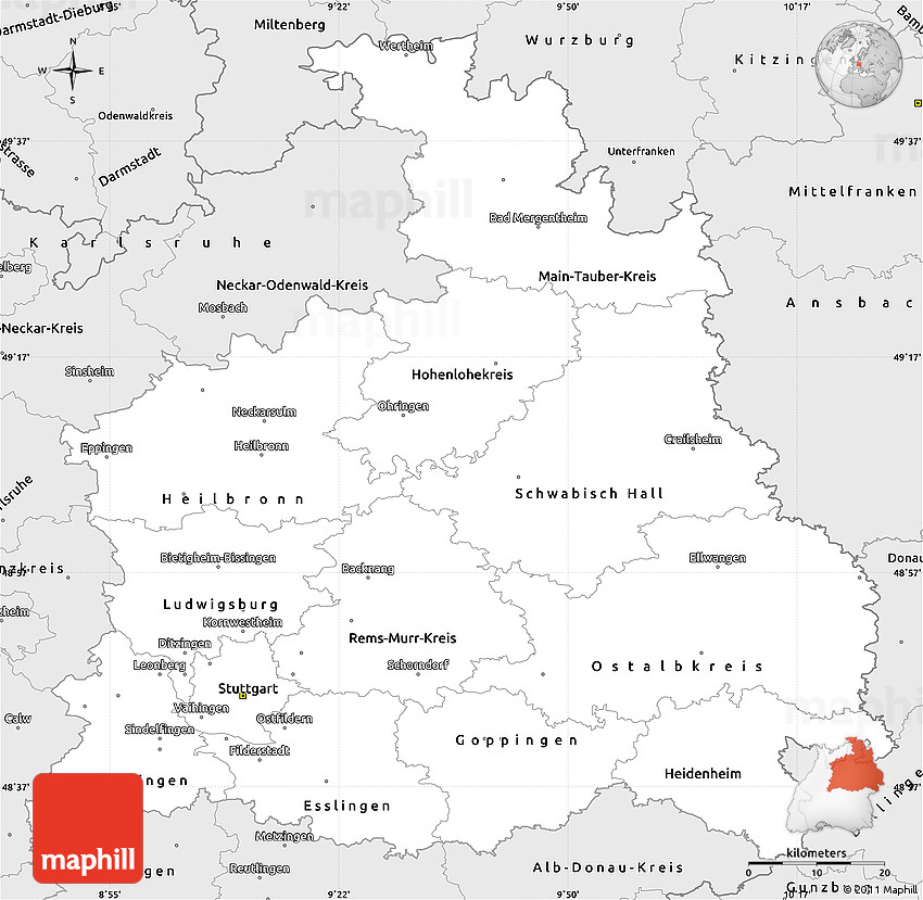 The simple silver style outline map represents one of several map types and styles available. Look at Stuttgart, Baden-Württemberg, Germany from different perspectives.