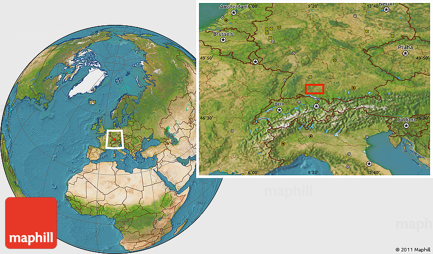 Maphill is a collection of map images. This image combines a satellite map with the globe centered on Steinenbach. Use the buttons under the image to switch to different map types.