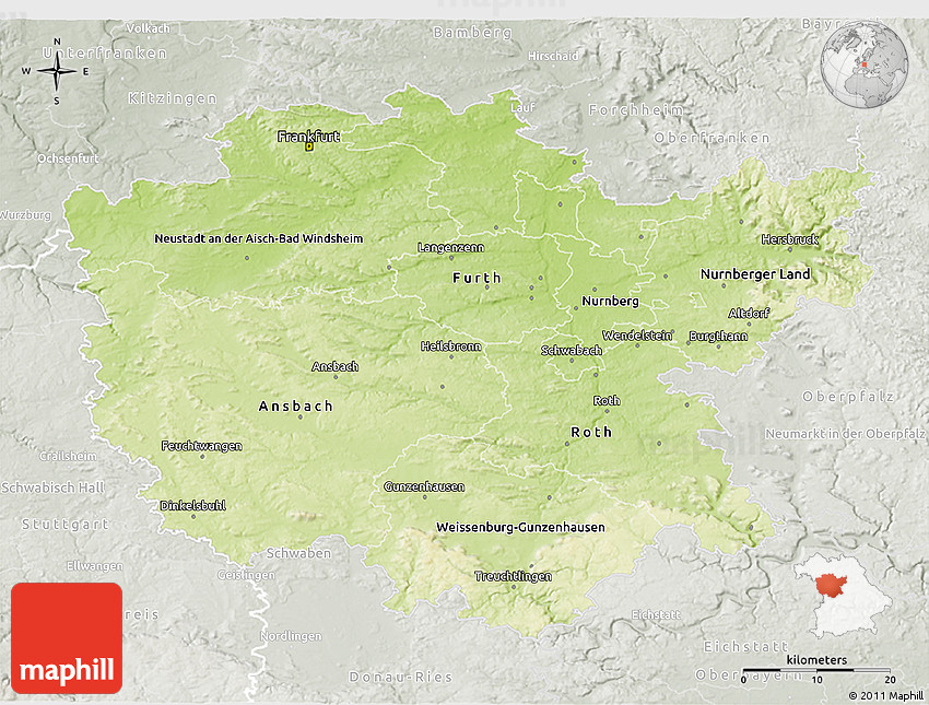 Each map style has its advantages. No map type is the best. The best is that Maphill lets you look at Mittelfranken from many different perspectives.