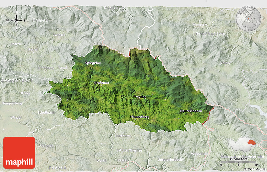 Satellite map shows the Earth's surface as it really looks like. The above map is based on satellite images taken on July 2004. This satellite map of Freyung-Grafenau is meant for illustration purposes only. For more detailed maps based on newer satellite and aerial images switch to a detailed map view.