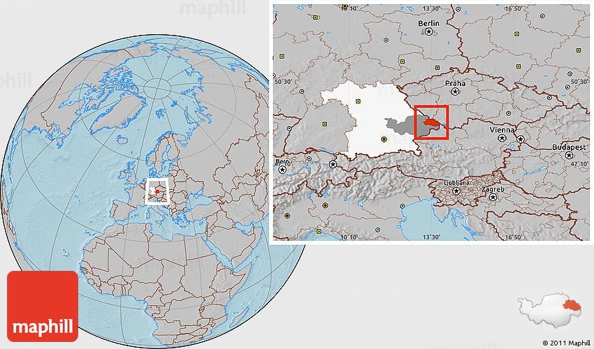 Maphill is a collection of map images. This image combines a gray map with the globe centered on Freyung-Grafenau. Use the buttons under the image to switch to different map types.