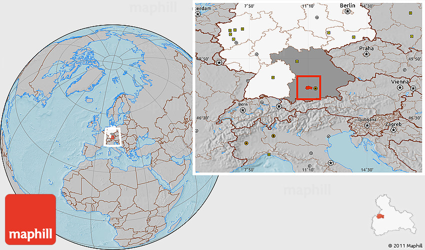 Maphill is a collection of map images. This image combines a gray map with the globe centered on Fürstenfeldbruck. Use the buttons under the image to switch to different map types.