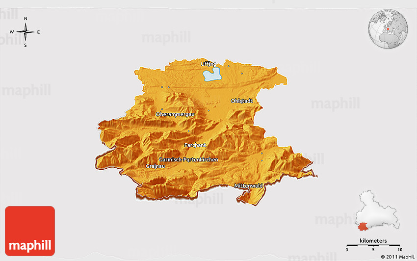 The 3D political map represents one of several map types available. Look at Garmisch-Partenkirchen, Oberbayern, Bayern, Germany from different perspectives.