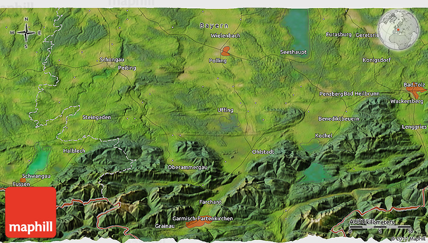 Satellite map shows the Earth's surface as it really looks like. The above map is based on satellite images taken on July 2004. This satellite map of Krün is meant for illustration purposes only. For more detailed maps based on newer satellite and aerial images switch to a detailed map view.