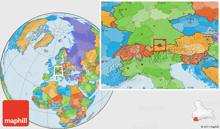 Maphill is a collection of map images. This image combines a political map with the globe centered on Garmisch-Partenkirchen. Use the buttons under the image to switch to different map types.