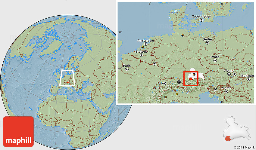 Each map type offers different information and each map style is designed for a different purpose. Read about the styles and map projection used in the above map (Savanna Style Location Map of Garmisch-Partenkirchen, highlighted parent region, within the entire country, hill shading).