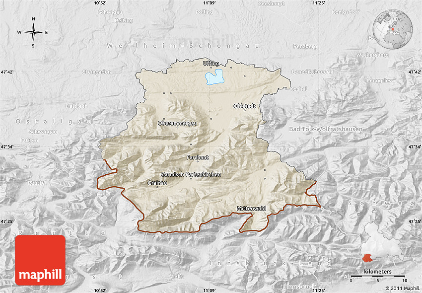 Each map style has its advantages. No map type is the best. The best is that Maphill lets you look at the whole area of Garmisch-Partenkirchen from several different angles.