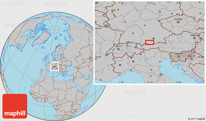 Maphill is a collection of map images. This image combines a gray map with the globe centered on Vorderbraunau. Use the buttons under the image to switch to different map types.