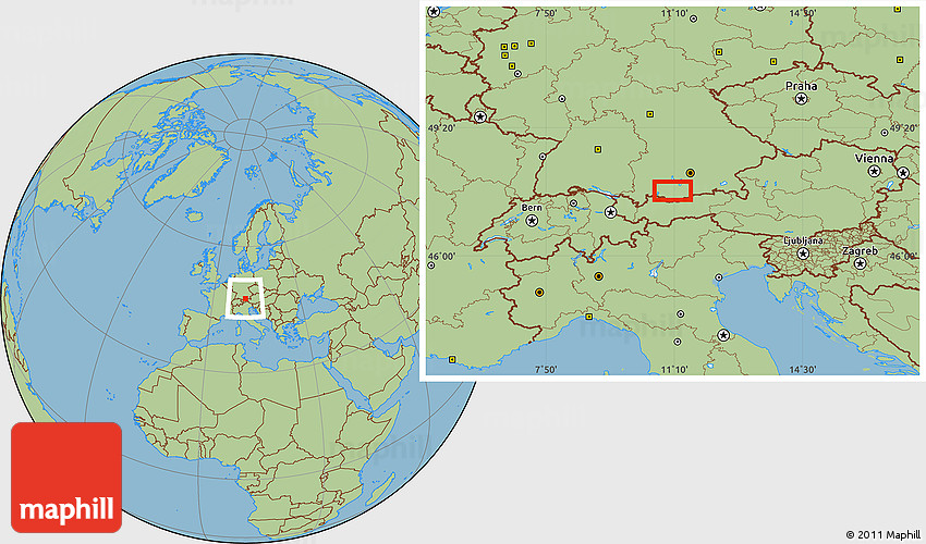 Maphill is a collection of map images. This image combines a savanna style map with the globe centered on Vorderbraunau. Use the buttons under the image to switch to different map types.
