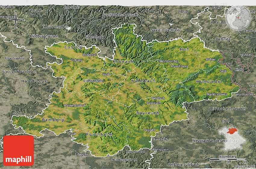 Each map style has its advantages. No map type is the best. The best is that Maphill lets you look at Oberfranken from many different perspectives.