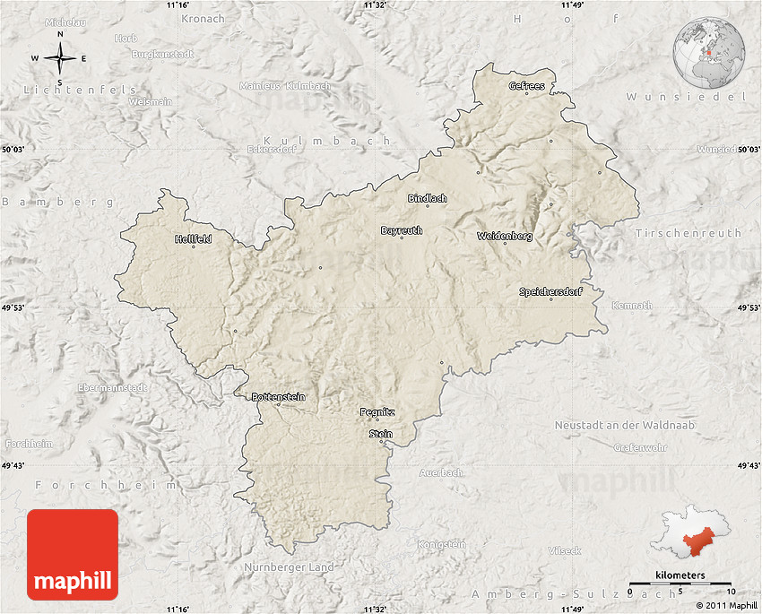 Maphill is a collection of map images. This shaded relief map of Bayreuth is one of them. Click on the Detailed button under the image to switch to a more detailed map.