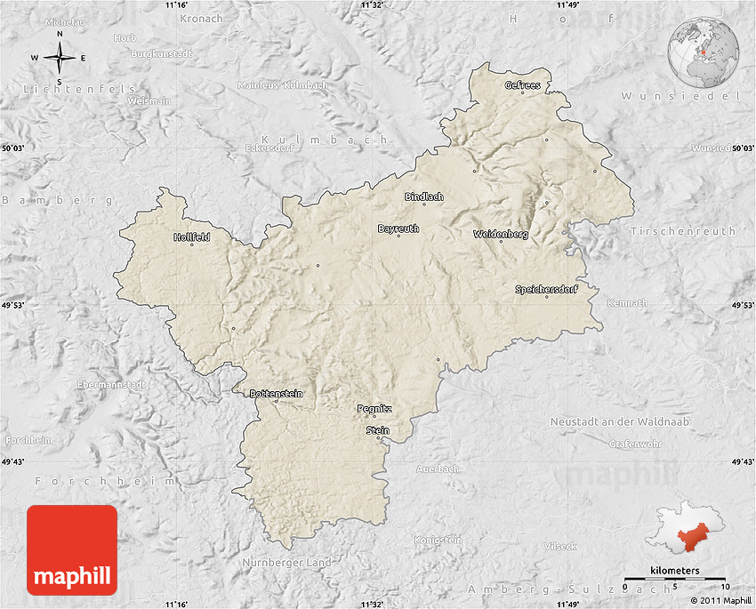 Maphill is a collection of map images. This shaded relief map of Bayreuth is one of them. Click on the Detailed button under the image to switch to a more detailed map.