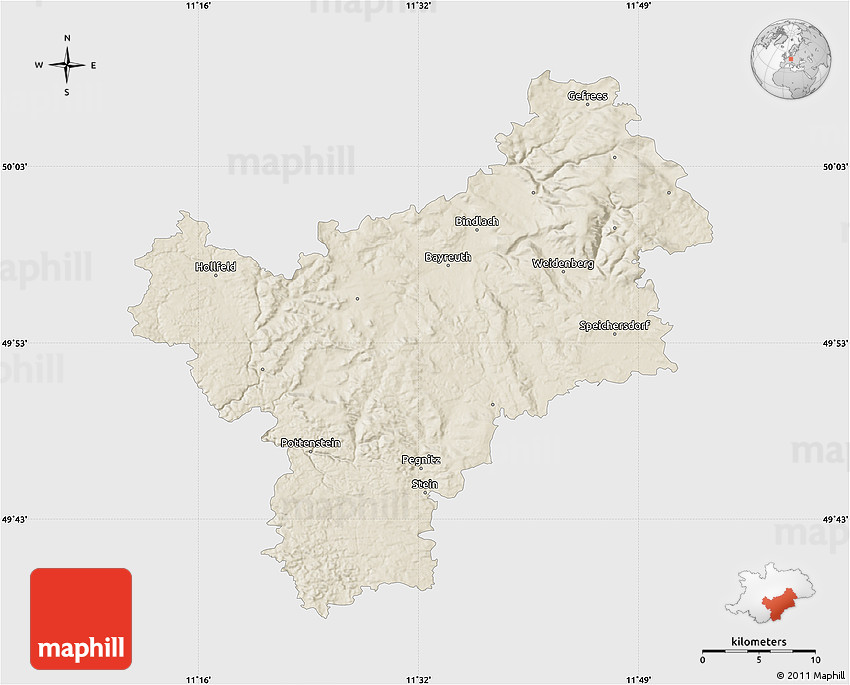 Maphill is a collection of map images. This shaded relief map of Bayreuth is one of them. Click on the Detailed button under the image to switch to a more detailed map.