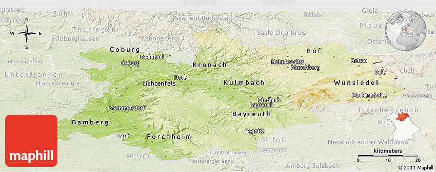 Each map style has its advantages. No map type is the best. The best is that Maphill lets you look at Oberfranken from many different perspectives.