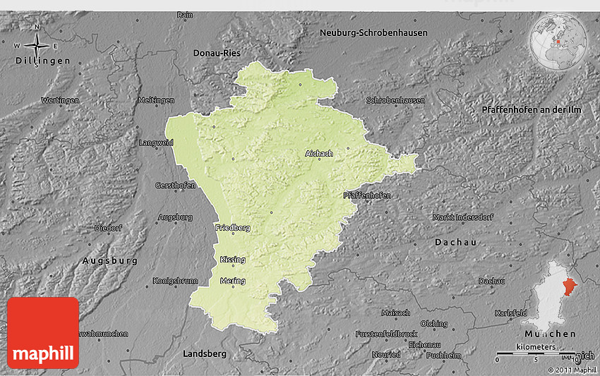 Each map style has its advantages. No map type is the best. The best is that Maphill lets you look at the whole area of Aichach-Friedberg from several different angles.