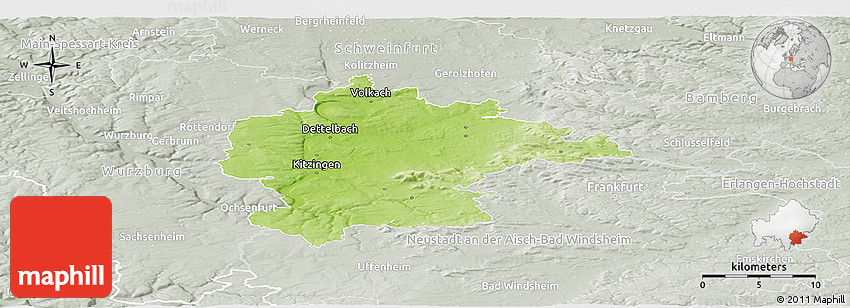 The panoramic physical map represents one of several map types available. Look at Kitzingen, Unterfranken, Bayern, Germany from different perspectives.