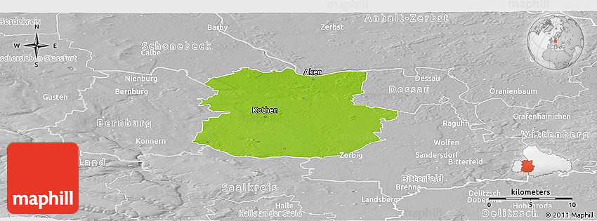 Each map type offers different information and each map style is designed for a different purpose. Read about the styles and map projection used in the above map (Physical Panoramic Map of Köthen, lighten, desaturated).