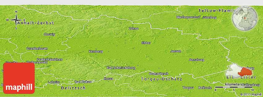 The panoramic physical map represents one of several map types available. Look at Wittenberg, Dessau, Sachsen-Anhalt, Germany from different perspectives.