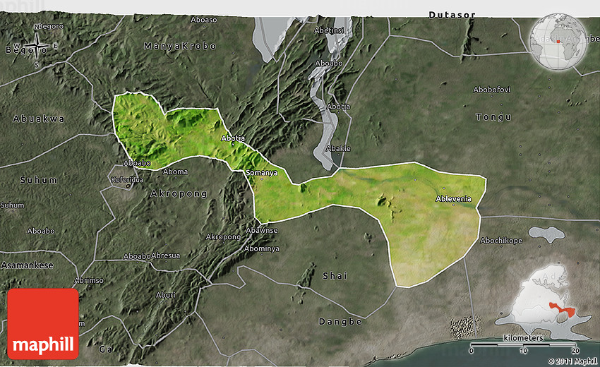 Satellite map shows the Earth's surface as it really looks like. The above map is based on satellite images taken on July 2004. This satellite map of Yilo-Krobo-Osudoku is meant for illustration purposes only. For more detailed maps based on newer satellite and aerial images switch to a detailed map view.