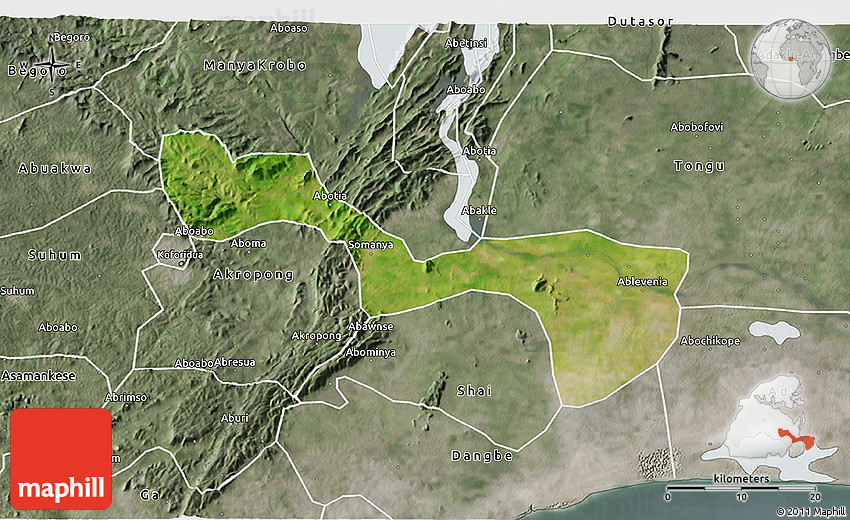 Satellite map shows the Earth's surface as it really looks like. The above map is based on satellite images taken on July 2004. This satellite map of Yilo-Krobo-Osudoku is meant for illustration purposes only. For more detailed maps based on newer satellite and aerial images switch to a detailed map view.