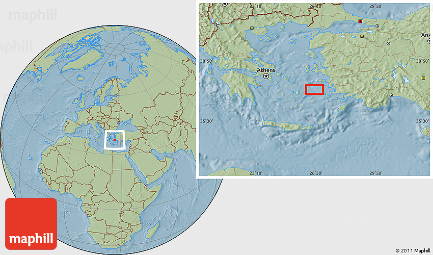 Maphill is a collection of map images. This image combines a savanna style map with the globe centered on Lipsoí. Use the buttons under the image to switch to different map types.
