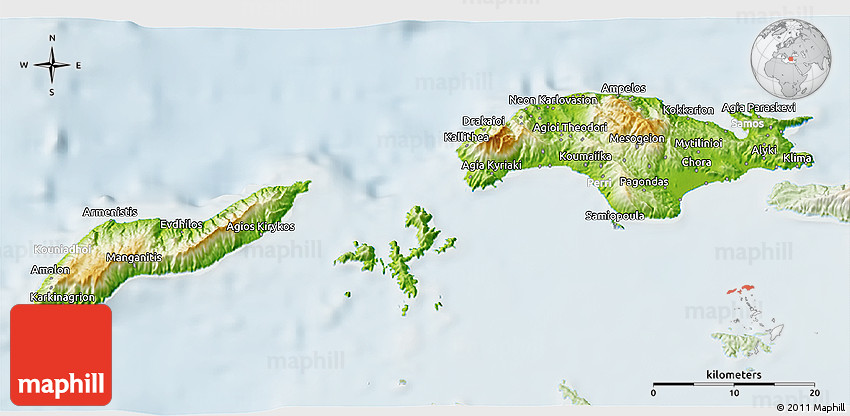 Each map type offers different information and each map style is designed for a different purpose. Read about the styles and map projection used in the above map (Physical 3D Map of Samos, lighten).