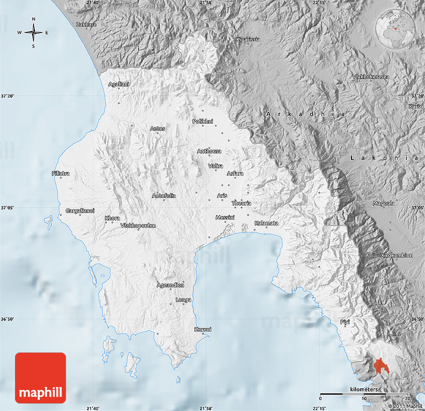 Maphill is a collection of map images. This gray map of Messinia is one of them. Click on the Detailed button under the image to switch to a more detailed map.