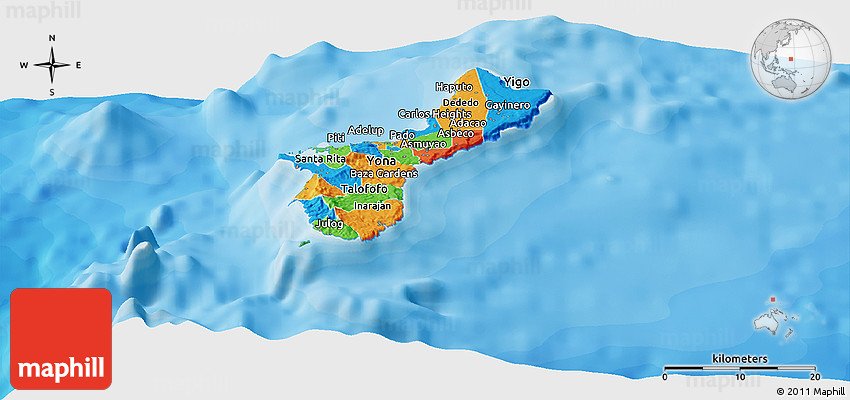 The panoramic political map represents one of many map types and styles available. Look at Guam from different perspectives.