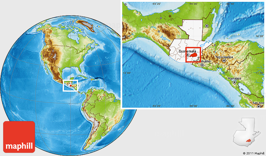 Maphill is a collection of map images. This image combines a physical map with the globe centered on Jalapa. Use the buttons under the image to switch to different map types.