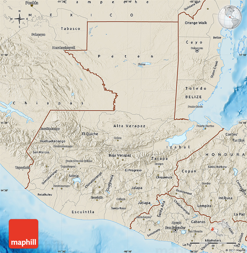 Maphill is a collection of map images. This shaded relief map of Guatemala is one of them. Click on the Detailed button under the image to switch to a more detailed map.
