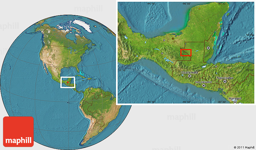 Maphill is a collection of map images. This image combines a satellite map with the globe centered on El Porvenir. Use the buttons under the image to switch to different map types.