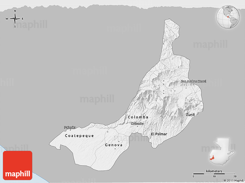 The grey colored map. Quezaltenango is highlighted in white. This color scheme is similar to silver styled maps, but compared to the latter, a darker shade of gray is used.