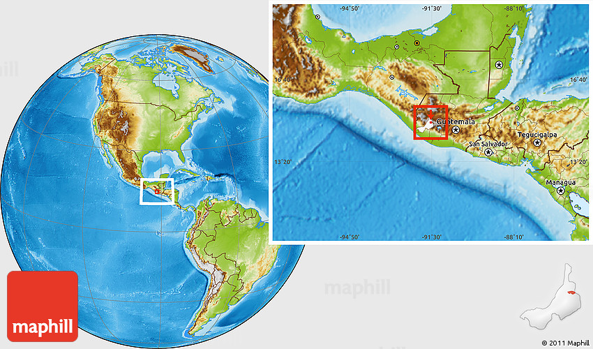 Maphill is a collection of map images. This image combines a physical map with the globe centered on Olintepeque. Use the buttons under the image to switch to different map types.