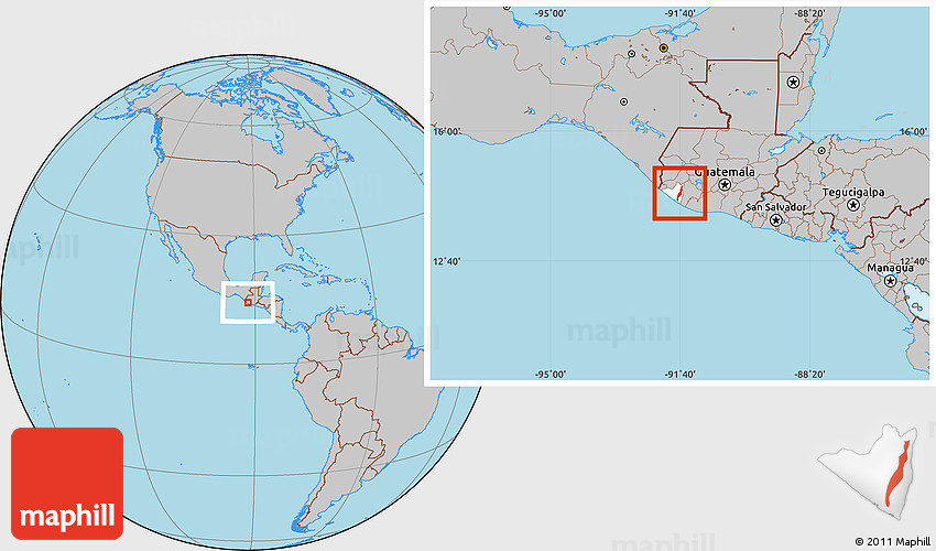 Maphill is a collection of map images. This image combines a gray map with the globe centered on Sta Cruz Mulua. Use the buttons under the image to switch to different map types.